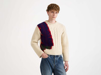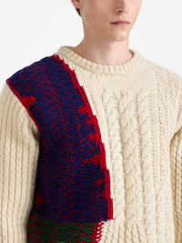 Cable-knit jumper in chunky ivory knit. Features a distorted float jacquard and jacquard elbow patch. Finished with rib trims. Crafted in Ireland. Details - Colour: Ivory - Composition [Main]: 100% Wool - Made in: Ireland - Model [Wears]: Size S, 184cm Tall - SKU: KW1520YN0461006
