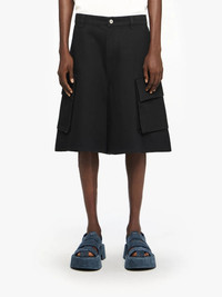 - Wide leg cargo denim shorts with large slanted patch pocket detailing - Mid-rise waistline - Side pockets - Leather patch with logo embossed on the back - Oversized fit - take your usual size Additional Information - Colour: Black - Composition: 100% Cotton - Mid-weight denim-cotton fabrication - Made in: Italy - SKU: DT0108PG1595999