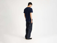Circular T-shirt in navy jersey. Each T-shirt is made from circular knit jersey, a construction technique that removes side seams entirely. The result is a cleaner silhouette and natural drape. Finished with a gloss screenprint logo in the handwriting of celebrated calligrapher Chen Li. Limited sizes available due to seamless knitting construction. Details - Colour: Navy - Composition [Main]: 100% Cotton - Made in: Portugal - Model [Wears]: Size M, 189cm Tall - SKU: JT0307PG1936888