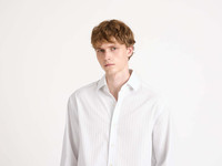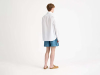 Dress shirt in white-blue cotton poplin. In a classic silhouette, constructed with mother of pearl removable collar stay. Finished with tonal anchor embroidery, loafer stitching on the sleeve, and mother-of-pearl buttons. Details - Colour: White/Blue - Composition [Main]: 100% Cotton - Made in: Italy - Model [Wears]: Size 46, 184cm Tall - SKU: SH0367PG1891023