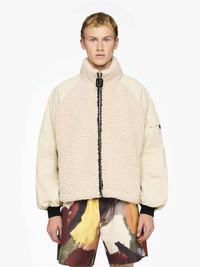 - Relaxed fit colour block track style jacket with contrasting panels - High neckline - Padded raglan sleeves with ribbed cuffs - Zip closure with black signature ring puller - Logo embossed black leather patch on centre back - Flap pocket on left sleeve - Adjustable elasticated hem - Fully lined - Relaxed fit, take your usual size Additional Information - Colour: Beige - Composition: 84% Polyester, 16% Acrylic - Mid-weight fleece fabrication - Made in: China - SKU: JK0372PG1736132