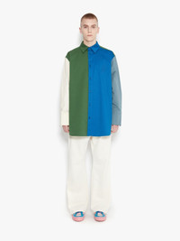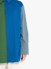 - Oversized fit overshirt - Dropped shoulder - Patchwork construction - Embroidered anchor on chest - Tonal buttons - Oversized style, designed to be worn loose. Take your usual size. Details - Colour: Green/Multi - Composition: 100% Cotton - Twill weave - Lightweight - Fabric from Hong Kong