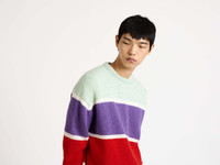 CONTRAST STRIPED CREW NECK JUMPER IN MINT