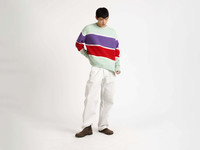 Contrast striped crew neck jumper in mint knit. Features a placement stripe and rib trim, finished with a side seam split at the hem. Made in Scotland. Details - Colour: Mint - Composition [Main]: 100% Lambswool - Made in: United Kingdom - Model [Wears]: Size M, 189cm Tall - SKU: KW1420YN0449515