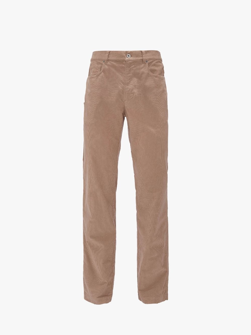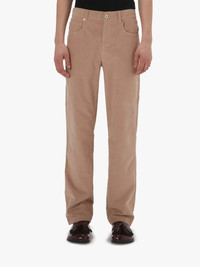 - Corduroy Straight leg trousers - Relaxed fit - Workwear tab - Leather patch with embossed logo - Relaxed fit - take your usual size Additional Information - Colour: Cream - Composition - Main: 100% Cotton - Garment dyed - Final wale Corduroy - Made in Bulgaria