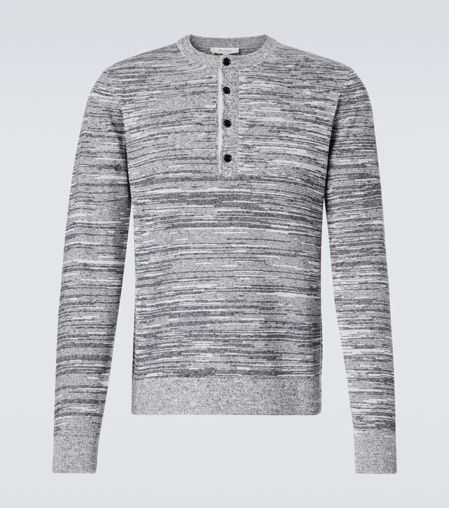 From casualwear to tailoring, JW Anderson marries modernity with style in every design. Crafted from a cotton and linen-blend, this Henley shirt is cut to a fitted silhouette and features a ribbed hem and cuffs. Product Details - Material: 45% cotton, 31% linen, 20% polyester, 4% polyamide - Care instructions: dry clean - Made in China - Designer color name: Steel - Item color: gray - Closure: partially buttoned front - Hem: ribbed - Cuff: ribbed - Item number: P01049268 Size & Fit - Fits small to size - we recommend trying one size larger - Slim fit - Stretchy fabric - Falls to the hip - Height of model is 189cm-74.5" and wears a size L