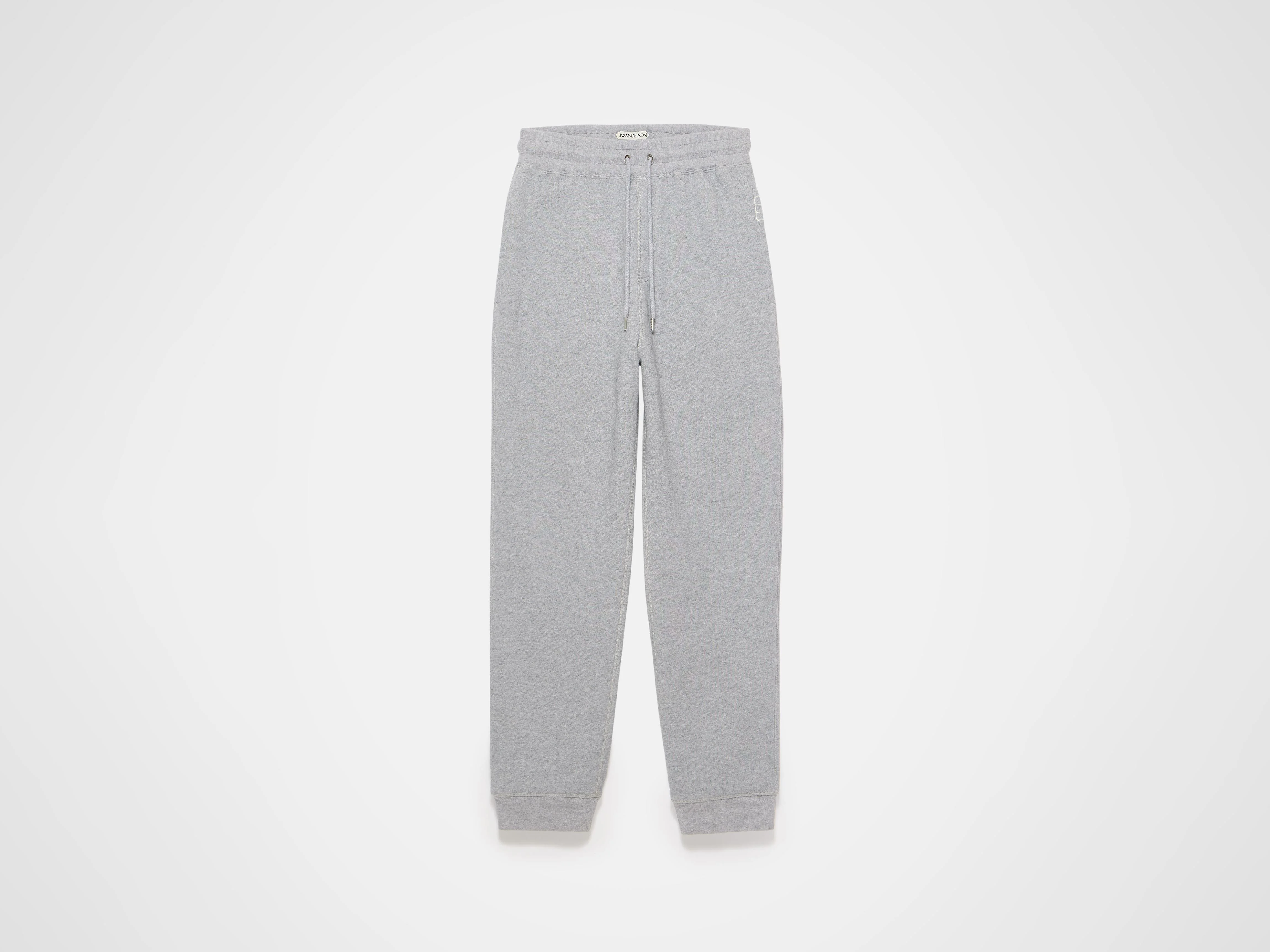 Cuffed sweatpants in mid grey melange jersey. Features an elasticated waist and adjustable drawstring, with cuffed hems. finished with loafer stitching details on the pockets. Details - Colour: Mid Grey Melange - Composition [Main]: 100% Cotton - Made in: Portugal - - Model [Wears]: Size S, 184cm Tall - SKU: JR0057PG1901945