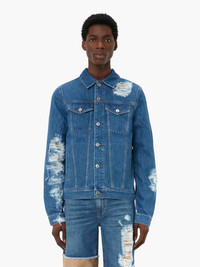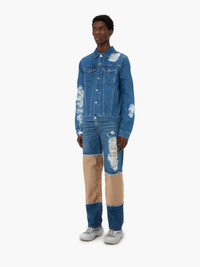 - Classic fit denim jacket - Distressed look with canvas inserts - Chest patch pockets - Contrast topstitching - Logo embossed leather patch - Fits true to size, take your normal size