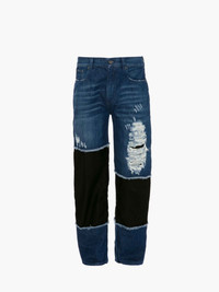 - Straight fit denim jeans - Distressed look with canvas inserts - Chest patch pockets - Contrast topstitching - Logo embossed leather patch - Fits true to size, take your normal size