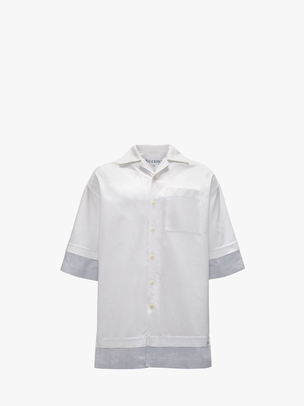 - Double layer shirt with JWA raised embroidery at hem - Dropped shoulder - Contrast sleeve and hem detail - Boxy fit - take your usual size Additional Information - Colour: White - Composition - Main: 100% Cotton - Cotton Oxford - Made in Portugal