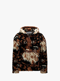 - Fleece hooded jacket with zip closure - Medium pile wool blend flee - Dropped shoulder - Pointelle flower print - Drawstring hem - Unlined - Relaxed fit - take your usual size Additional Information - Colour: Brown - Composition - Main: 68% Polyester, 17% Acrylic, 15% Wool - Lining: 100% Polyester - Made in China