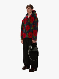 - Fleece hooded jacket with zip closure - Medium pile wool blend flee - Dropped shoulder - Pointelle flower print - Drawstring hem - Unlined - Relaxed fit - take your usual size Additional Information - Colour: Navy - Composition - Main: 68% Polyester, 17% Acrylic, 15% Wool - Lining: 100% Polyester - Made in China