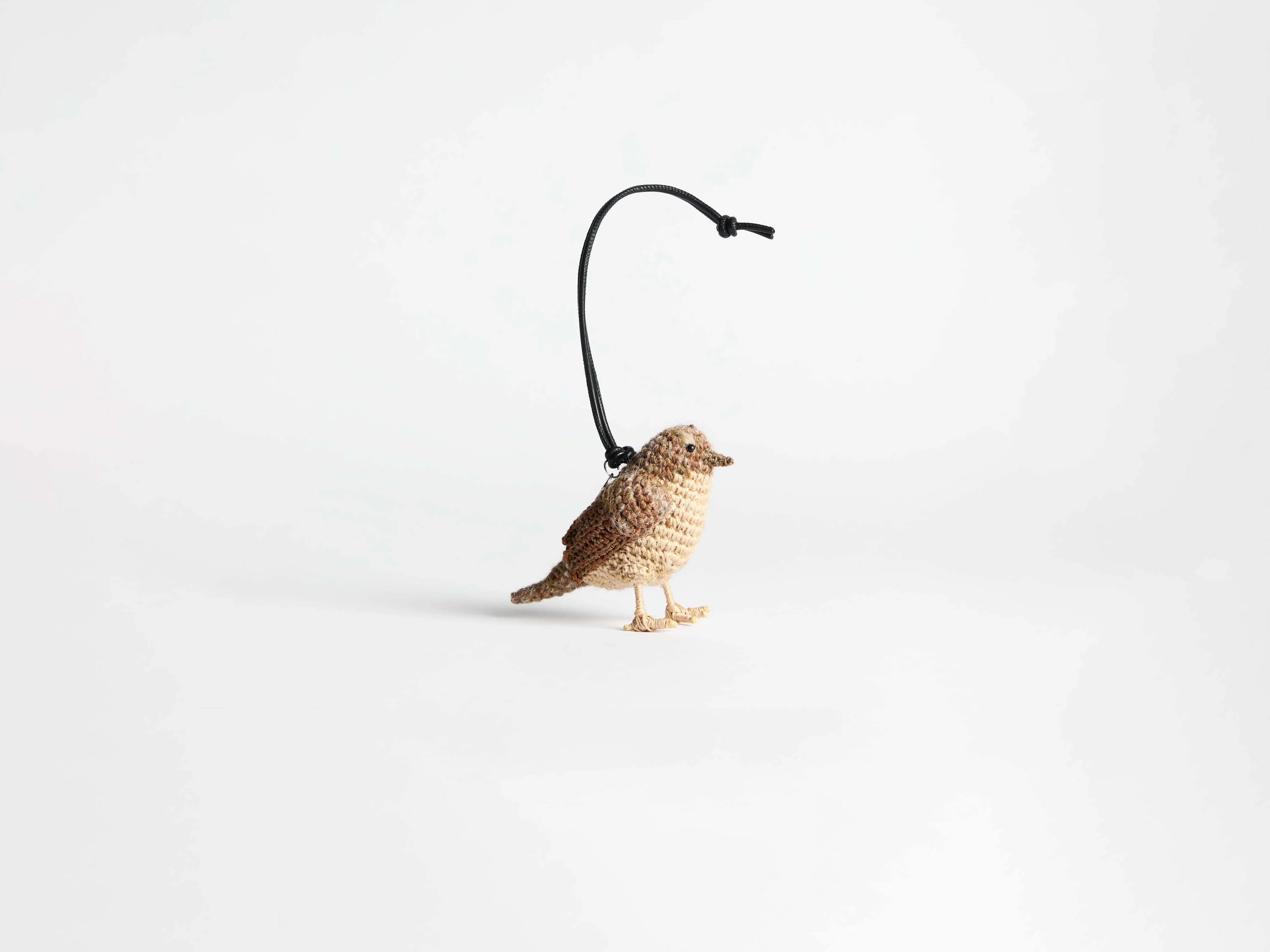 Hand-crocheted wren charm in mercerised cotton and mohair yarn featuring a silver engraved logo medallion, finished with a black leather cord. Details - Colour: Brown - Composition [Main]: 80% Cotton, 20% Mohair - Composition [Trim]: 100% Full Grain Calf Leather - Composition [Trim 2]: 100% Glass - Composition [Hardware]: 100% Zamak - Made in: Georgia - SKU: AC0449FA0496600