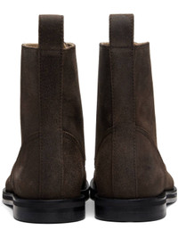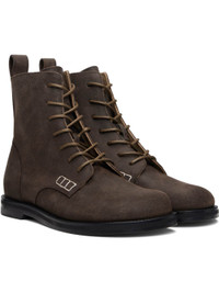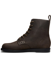 Ankle-high blistered suede boots. · Lace-up closure · Pull-loop at collar · Stacked leather midsole · Calfskin sole with rubber injection · Contrast blanket stitching in white Supplier color: Deep walnut Upper: leather. Sole: calfskin, rubber. Made in Italy 252477M255000
