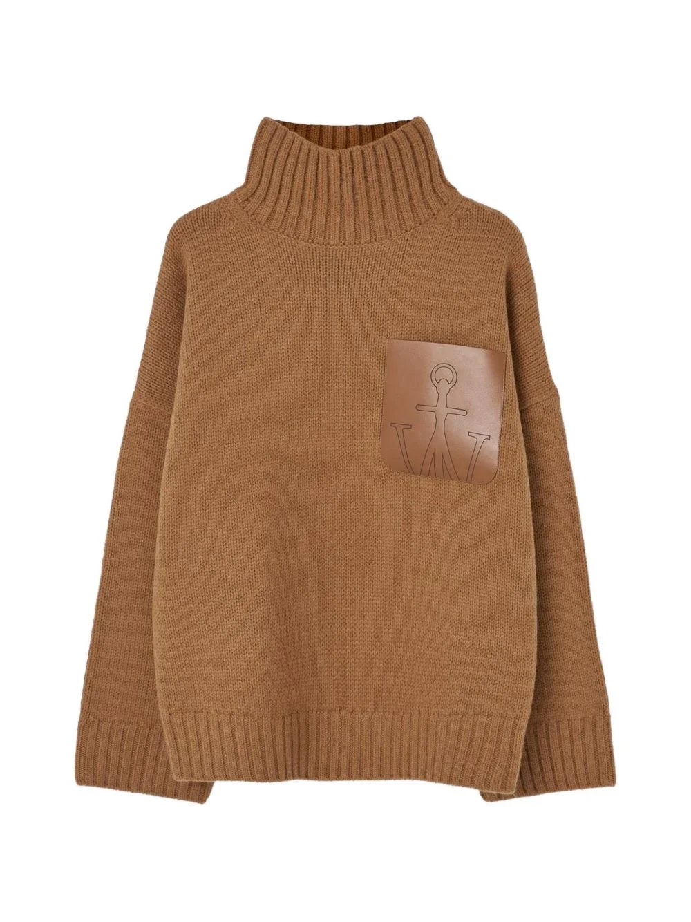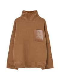 leather patch pocket sweater Highlights - Brown - Ribbed knit - High neck - Long sleeves - Leather patch pocket - Ribbed hem Imported Composition Wool 47%, Alpaca Wool 35%, Acetate 18% Washing instructions Read Manufacturer Guidelines