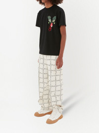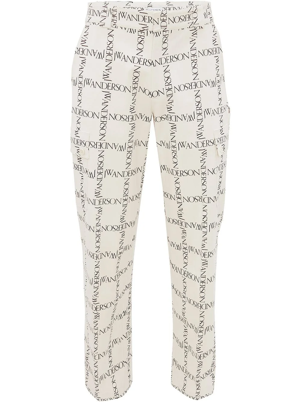 logo-print straight-leg trousers Decorated with an all-over logo pattern, these white and black cotton trousers from JW Anderson are cut for a casual straight-leg fit. Imported Composition Cotton 100% Washing instructions Dry Clean Only