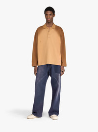 - Long sleeve rugby polo top with collar - Dropped shoulders - Contrast trompe l'oeil raglan sleeves - Button placket with tonal buttons - Anchor print on front to match sleeve colour - Relaxed fit - take your usual size Details - Colour: Tobacco - Composition: 100% Cotton - Cotton jersey fabrication - Made in: Portugal - SKU: JO0268PG1755619