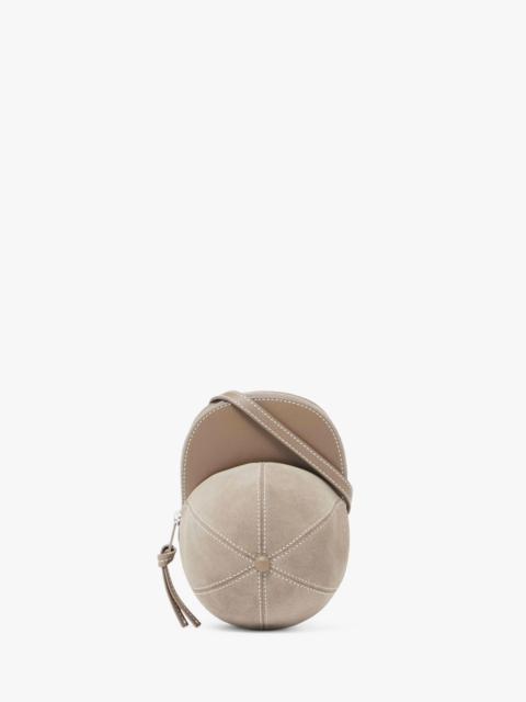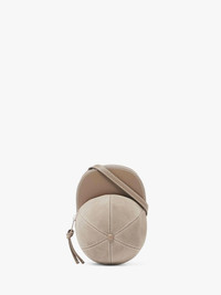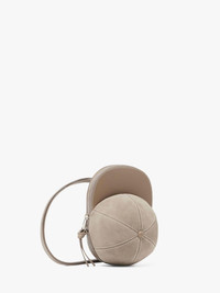 - Crossbody Cap bag - Adjustable leather crossbody strap - Suede crown and calf leather body - Topstitching details - Silver tone hardware - Blind logo embossing on back panel - Zip opening with branded puller - Can be worn as a crossbody Additional Information - Colour: Cobblestone - Dimensions H: 11cm / W: 19.5cm / D: 13.5cm - Strap Drop: Long: 50cm - Outer: 70% Full grain calf leather, 30% split grain calf suede - Lining: 100% Split grain calf suede - Hardware: 100% Zamak - Made in Hungary