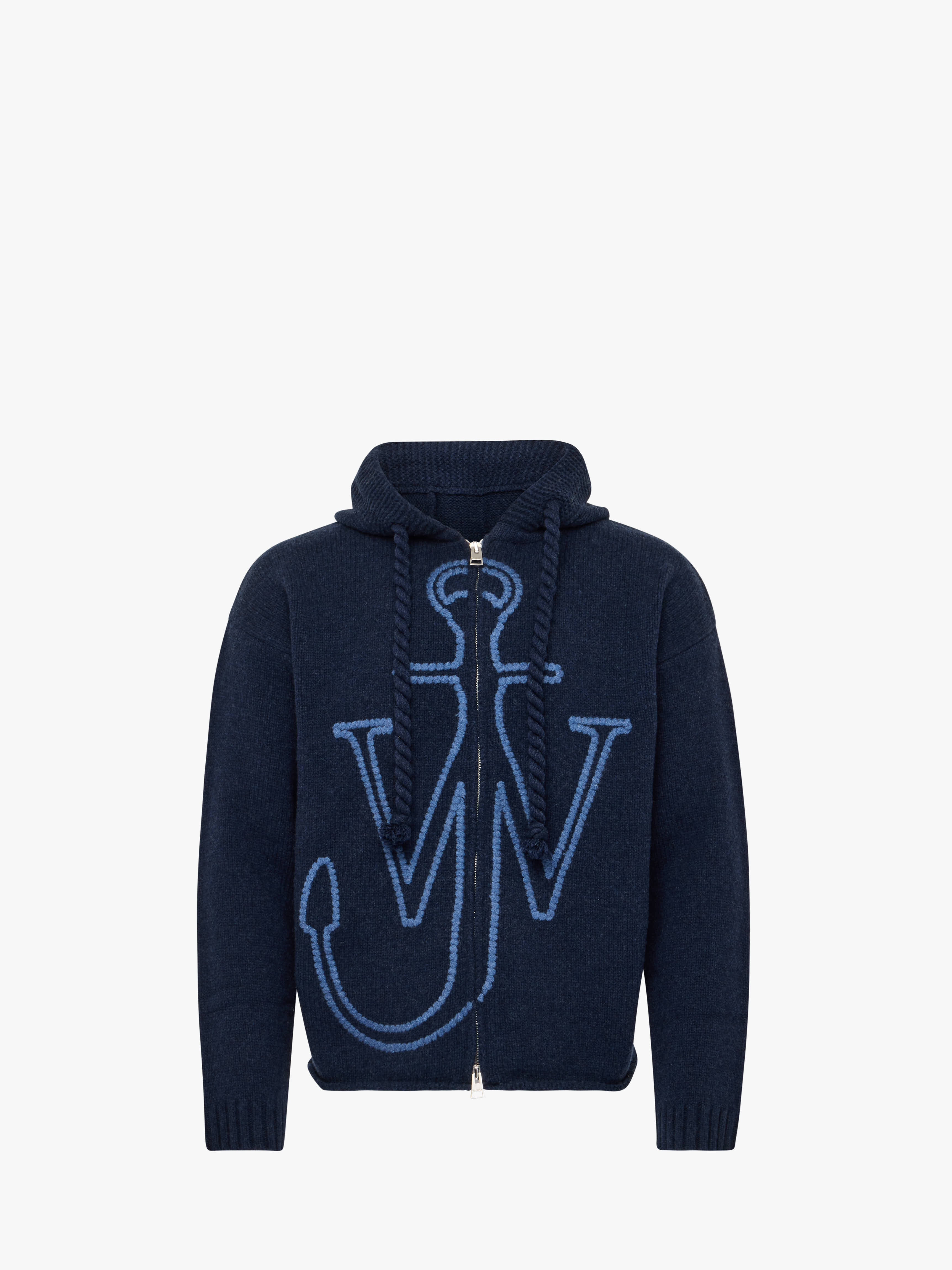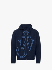 - Relaxed fit, knitted zipped-hoodie complete with anchor embroidery design - Dropped shoulder - Twisted draw-cords - Two way zip - Ribbed cuffs - Rolled hemline - Unlined Details - Colour: Light Steel Blue - 100% Merino Extrafine Wool - Heavy weight fabrication - Made in: China - SKU: KW1429YN0412768 - Model Height: 184cm, Model Wearing Size: S