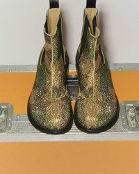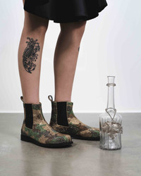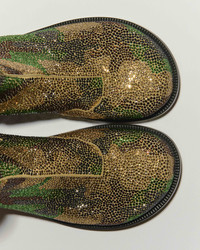 Chelsea Loafer Boot in Military Green Strass. Crafted in Italy, this Chelsea boot is embellished with military-print strass and finished with a blind-embossed JW Anderson logo. Designed with an improved fit and cushioned insole for comfort. Details - Colour: Military Green - Composition [Outer 1]: Glass Hotfix With Adhesive Firm - Composition [Outer 2]: 100% Split Lamb Leather - Composition [Lining]: 100% Split Grain Calf Leather - Composition [Outsole]: 100% Split Grain Calf Leather - Made in: Italy - SKU: CT0003PR0294570