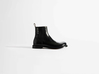 Chelsea Loafer Boot in Black Smooth Calf Leather. Crafted in Italy, this Chelsea boot is detailed with off-white loafer box stitching and a blind-embossed JWA logo. Designed with an improved fit and additional foam for comfort. Details - Colour: Black - Composition [Outer]: 100% Full Grain Calf Leather - Composition [Lining]: 100% Split Grain Calf Leather - Composition [Sole]: 100% Split Grain Calf Leather - Made in: Italy - SKU: CT0003LA0391999