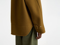 Crafted in Italy with a specialist in double-face construction, this jacket takes cues from vintage fireman styles. Features a funnel neck with logo press snap, off-centre zip opening, and panel detailing at the back. Double-faced fabric is hand-finished at the seams for a clean, unlined finish. Relaxed fit with welt pockets. Details - Colour: Tobacco - Composition [Main]: 90% Wool, 10% Cashmere - Composition [Lining]: 100% Cupro - Made in: Italy - Model [Wears]: Size 46, 185cm Tall - SKU: JK0384PG1826619