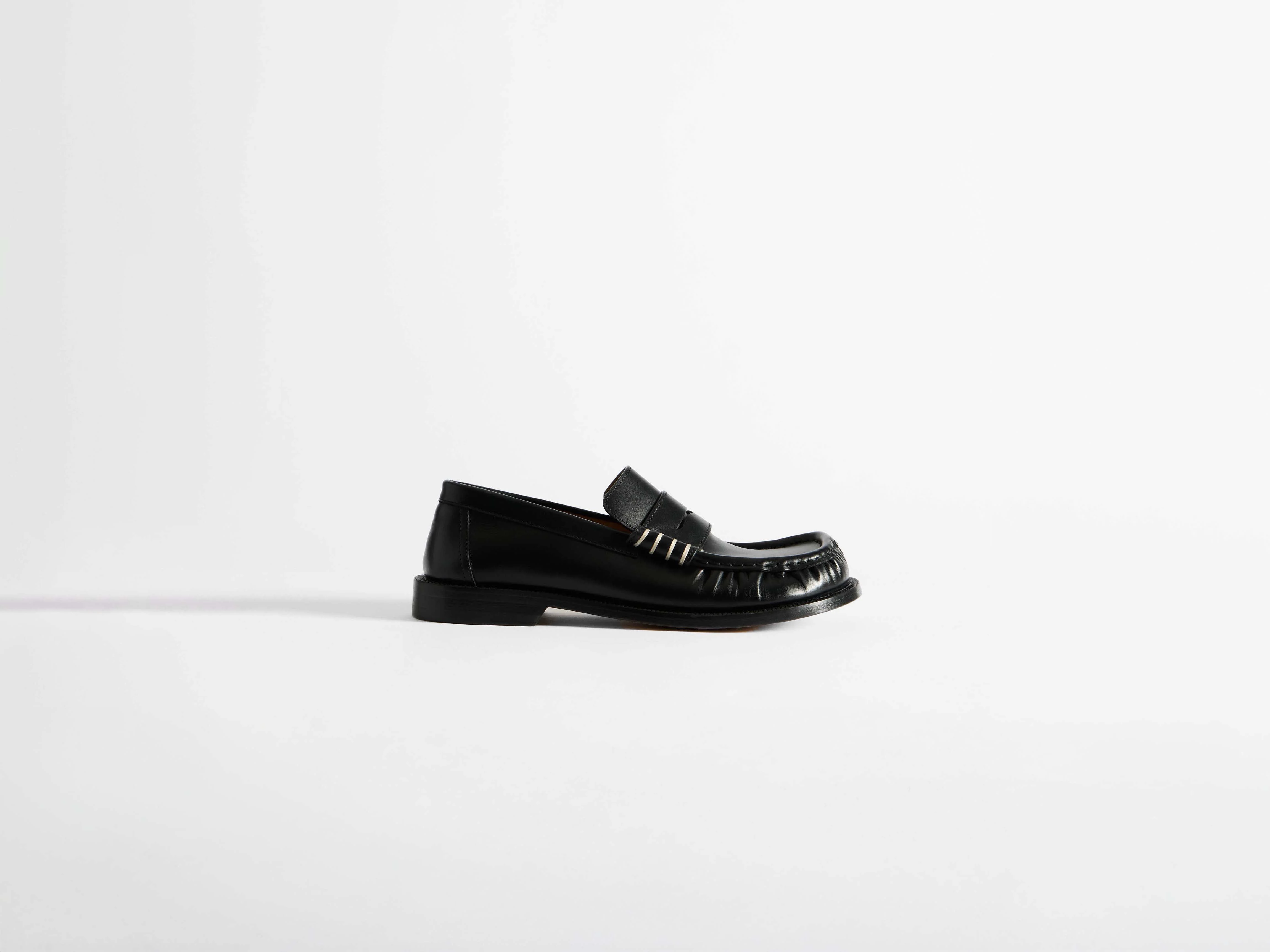 Loafer Moccasin in Black. Crafted in Italy, this moccasin features off-white box stitch detailing and a blind-embossed JWA logo. Designed with an improved fit and cushioned insole for added comfort. Details - Colour: Black - Composition [Outer]: 100% Full Grain Calf Leather - Composition [Lining]: 100% Split Grain Calf Leather - Composition [Sole]: 100% Split Grain Calf Leather - Made in: Italy - SKU: MO0002LA0391999