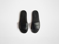 Open Toe Slide in Black calf leather. Crafted in Italy, this slide features an upper made from suede leather and a nappa leather lining, finished with loafer off-white box stitches. Designed for comfort as well as refinement, it is finished with a foam insole, a nubuck leather outsole suitable for indoor and outdoor wear, and the new JW Anderson logo woven label on the insole. Details - Colour: Black - Composition [Outer]: 100% Full Grain Calf Leather - Composition [Lining]: 100% Cow Full Grain Leather - Composition [Sole]: 100% Split Grain Calf Leather - Made in: Italy - SKU: FL0010LA0268999