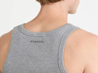 Rib vest in a slim-fitting mid grey melange jersey. Features a bound neck and armhole with a printed logo on the back of the neck. Details - Colour: Mid Grey Melange - Composition [Main]: 95% Cotton, 5% Elastane - Made in: Portugal - Model [Wears]: Size S, 184cm Tall - SKU: JO0290PG1903945