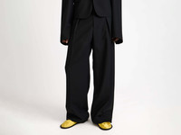 Straight leg trousers in black. Features welt back pocket, zip fly and logo tailored waist banding. Finished with leather logo patch. Details - Colour: Black - Composition [Main]: 100% Wool - Made in: Italy - Model [Wears]: Size 46, 185cm Tall - SKU: TR0421PG1927999