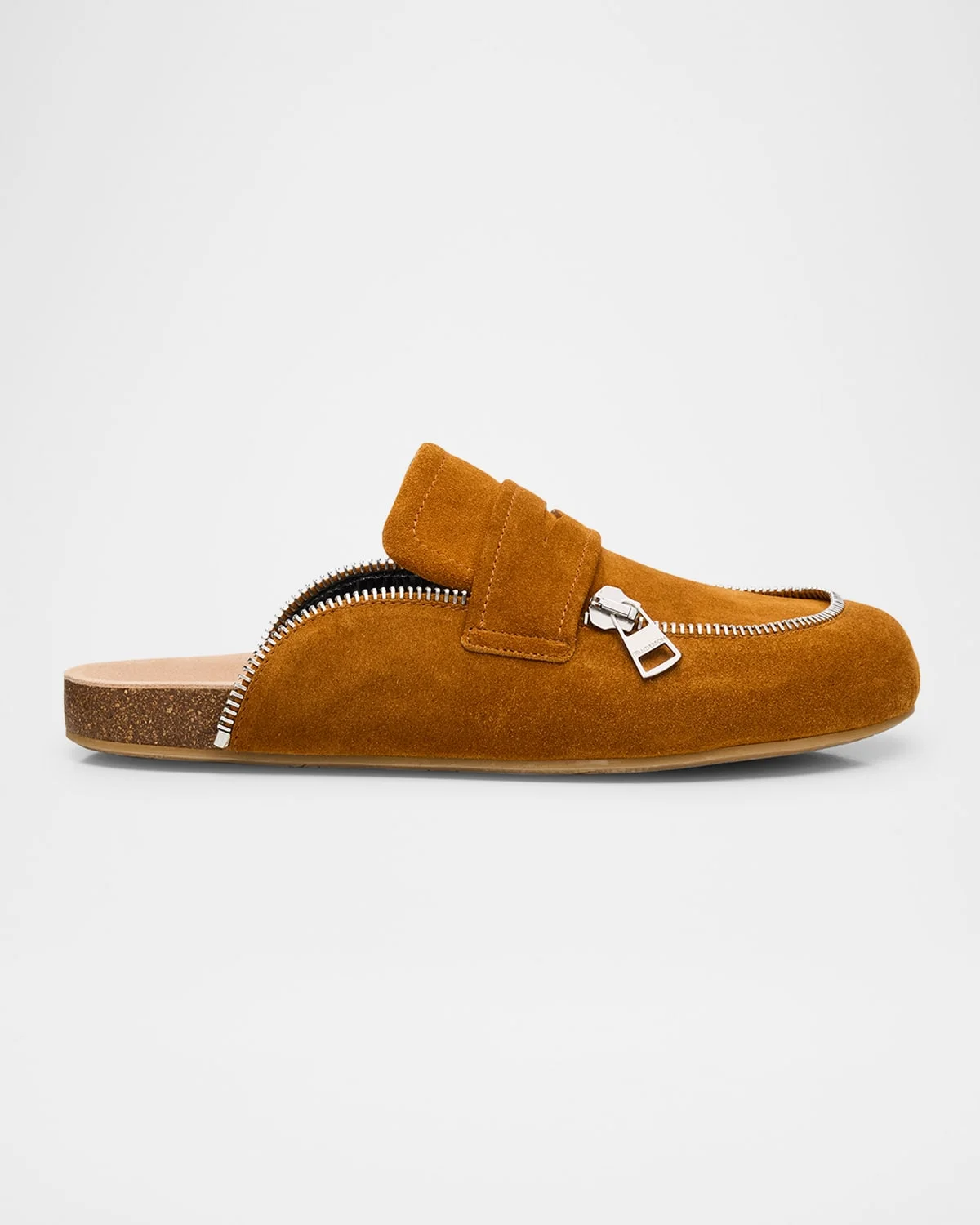 - JW Anderson signature loafers in suede defined by a biker zip design - Flat heel - Round toe - Penny keeper strap - Silvertone hardware - Leather lining - Rubber outsole - Slip-on style - Wide fit - Made in Italy