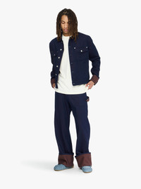 - Boxy fit Denim Jacket with turn-up cuff detail - Flap pockets - Tonal topstitching - Contrast turn up cuffs - Silver buttons - Side pockets - Logo embossed raw leather patch at back hem - Unlined Details - Colour: Blue/Red - Composition: 100% Cotton - Two tone colour denim - Sleeve length: 92cm - Centre back length: 67.5cm - Made in: Italy - SKU: DJ0044PG1836807