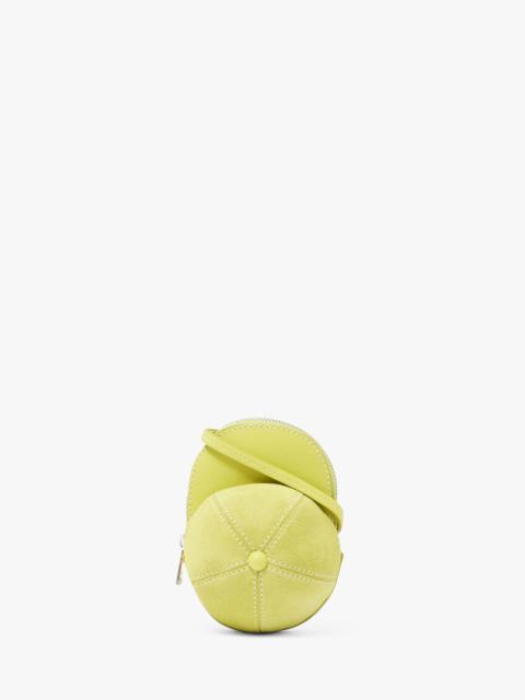 - Mini Crossbody Cap bag - Adjustable leather crossbody strap - Suede crown and calf leather body - Topstitching details - Silver tone hardware - Blind logo embossing on back panel - Zip opening with branded puller - Can be worn as a crossbody Additional Information - Colour: Lime - Dimensions H: 8cm / W: 13cm / D: 9.5cm - Strap Drop: Long: 50cm - Outer:70% Full grain calf leather, 30% split grain calf suede - Lining: 100% Split grain calf suede - Hardware: 100% Zamak - Made in Hungary
