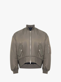 - Relaxed fit bomber jacket, complete with tonal panelling - Dropped shoulder - Ribbed (curved) hem and cuff - Side flap pockets - Fully lined with a contrasting hue - Logo embossed raw leather patch on centre back - Relaxed fit, take your usual size Details - Colour: Steel - Composition: 100% Nylon - Mid-weight nylon fabrication - Made in: China - SKU: JK0357PG1696925
