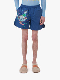 - Wide leg swim shorts - Draw-string adjustment - Frontal Pigeon print - Slanted Side pockets - Fits true to size, take your normal size. Additional Information - Colour: Navy - Composition - Main: 100% Polyamide - Made in Portugal