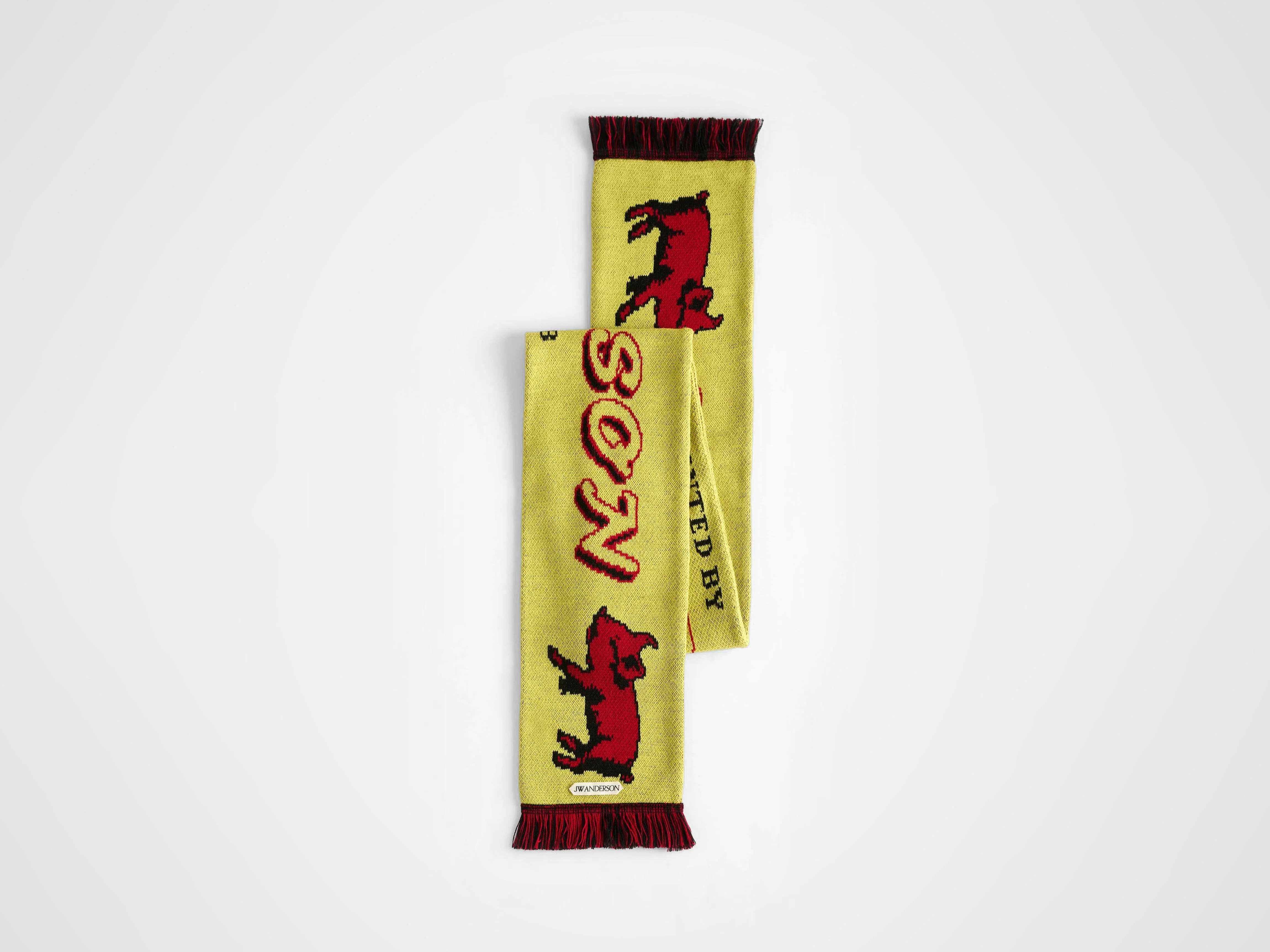 Piglet football knitted scarf in traditional jacquard, finished with fringe trims. Made in the UK by a traditional football scarf specialist. Details - Colour: Marigold - Composition [Main]: 100% Acrylic - Made in: United Kingdom - SKU: KW1428YN0468245