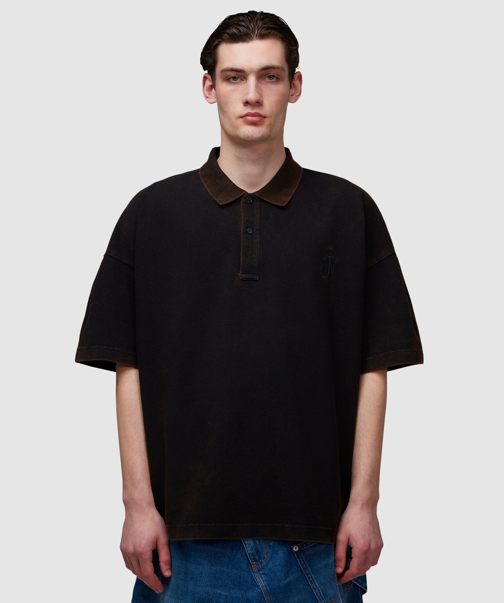 - Boxy fit polo shirt - Short sleeve - Dropped shoulder - Tonal anchor embroidery on chest - Tonal buttons - Oversized style, designed to be worn loose. Take your usual size.
