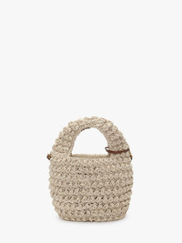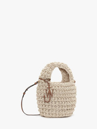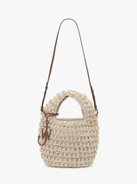- Knitted cotton basket bag - Removable and adjustable leather crossbody strap - Leather hanging anchor charm - Unlined - Gold tone hardware - Can be worn crossbody or on the shoulder