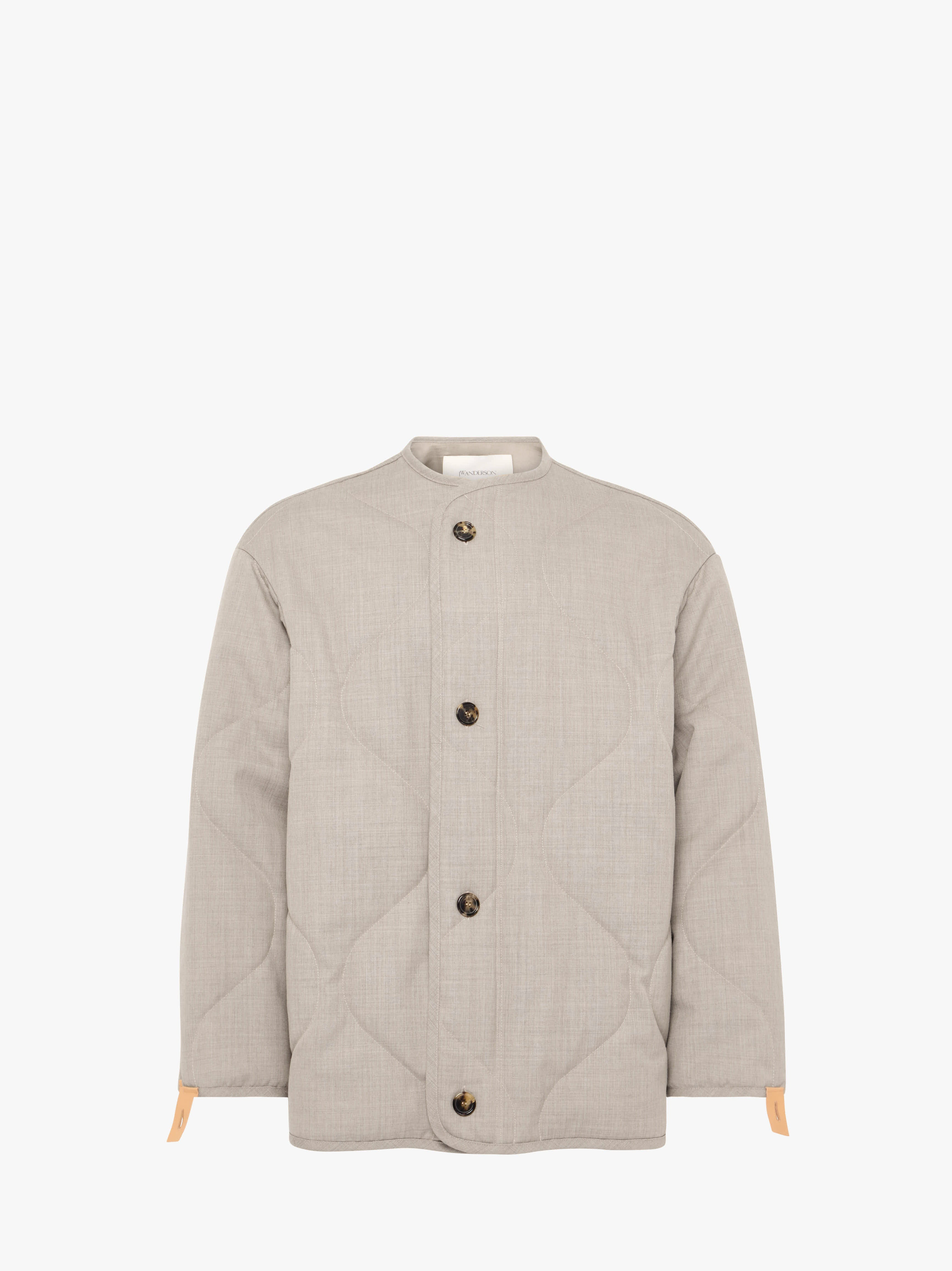 - Oversized jacket complete with all-over quilted design - Dropped shoulder - Button placket fastening with horn buttons - Underarm slit - Side pockets - Tonal anchor embroidery at the back side - Raw leather tab at cuffs - Unlined Details - Colour: Clay Melange - Composition: 100% Wool - Lining: 100% Viscose - Twill construction - Made in: Bulgaria - SKU: JK0395PG1821118 - Model Height: 184 cm, Model Wearing Size: M