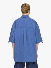 - Polo top complete with satin quilted pocket finish - Tonal collar and button placket - Oversized fit, take your usual size Additional Information - Colour: Light Indigo - Composition: 100% Cotton - Light-weight cotton poplin fabrication - Made in: Bulgaria - SKU: TP0350PG1090770