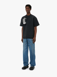 - Crewneck short sleeve jumper - Relaxed fit and dropped shoulder - Handmade tearing backed with jacquard barcode pattern - Oversized unisex style, designed to be worn loose. Take your usual size