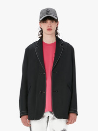 - Relaxed fit blazer - Single breasted - Peak lapel - Dropped shoulder and casual construction - Two button closure and black tone hardware - Unisex style - fits true to size, take your normal size