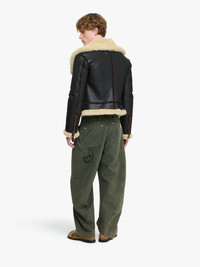 - Straight fit, soft leather jacket complete with contrasting faux-fur style collar - Oversized collar - Zip-front fastening - Dropped shoulder - Antique Brass hardware Details - Colour: Dark Brown - Composition: 100% Calf Leather - Contrasting Shearling Trims - Made in: Turkey - SKU: LJ0059LT0123685