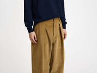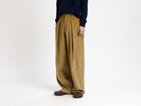 Single pleat trousers in biscuit corduroy. Features a wide leg and zip fly. Finished with loafer stitch on back pocket. Details - Colour: Biscuit - Composition [Main]: 100% Cotton - Composition [Lining]: 100% Cotton - Made in: Italy - Model [Wears]: Size 46, 189cm Tall - SKU: TR0418PG1880145