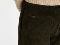 Single pleat trouser with wide leg in moss corduroy, finished with loafer stitching details on the back pocket. Details - Colour: Moss - Composition [Main]: 100% Cotton - Composition [Lining]: 100% Cotton - Made in: Italy - Model [Wears]: Size 46, 184cm Tall - SKU: TR0418PG1880580