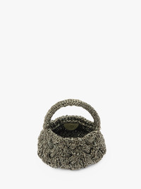 - Hand-knitted top handle raffia bag - Silver beaded detailing - Logo engraving on left side handle - Magnetic closure - Leather base with blind logo embossing - Leather trims - Unlined - Can be worn in hand Details - Colour: Gunmetal - Dimensions: H: 15cm / W: 21cm / D: 10cm - Strap Drop: 10cm - Outer: 90% Raffia, 10% Full grain calf leather - Hardware: 100% ZamakMade in IndiaSKU: HB0726FA0445975