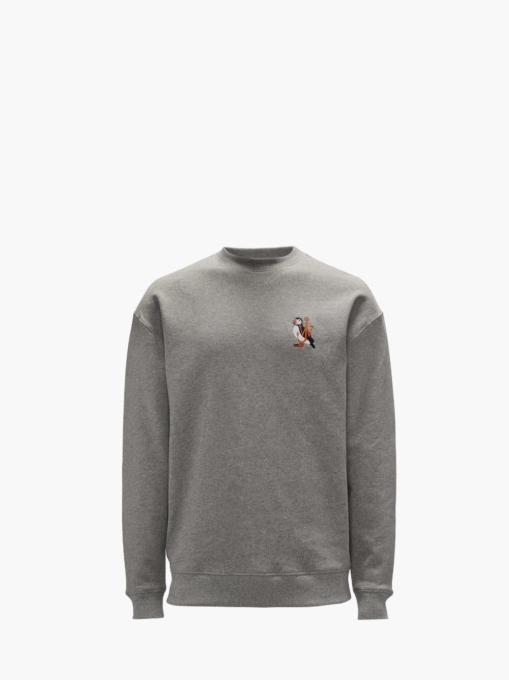 - Crewneck sweatshirt with raised Puffin embroidery - Crew neckline - Ribbed hem and cuff - Dip dye - Regular fit - take your usual size Additional Information - Colour: Grey - Composition - Main: 100% Organic Cotton - 320gr loopback jersey - Natural Stretch - Made in Portugal