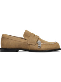 Blistered suede loafers. · Zip detailing at moc toe · Strap with cutout at vamp · Calfskin lining · Serrated edge at welt · Stacked leather midsole · Calfskin sole with rubber injection Supplier color: Rust Upper: leather. Sole: calfskin, rubber. Made in Italy 252477M239001