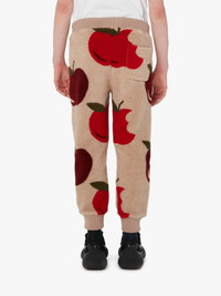 - Tapered leg fleece joggers - Contrast elasticated waistband and cuff - All over apple artwork - Zipped side pockets and back patch pockets - Leather zip pullers and silver-tone hardware - Oversized unisex style, designed to be worn loose. Take your usual size