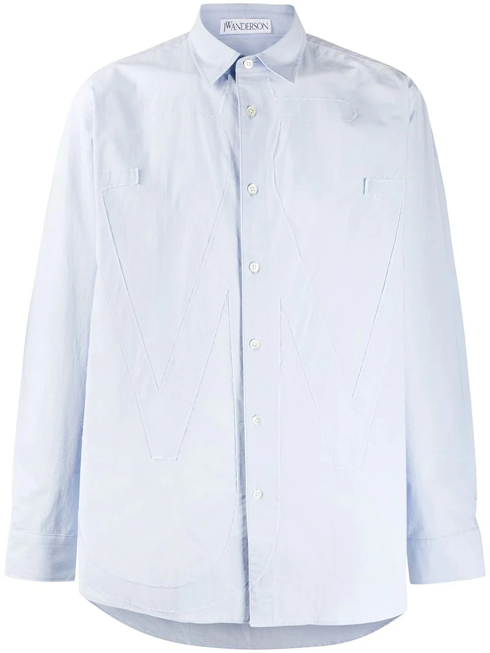 tonal applique buttoned shirt The most important element of any wardrobe is the basics. And this shirt from JW Anderson with a tonal logo applique detail is sure to become a crowning jewel in your collection. Bow down to wardrobe royalty. Highlights - Pale blue - Cotton - Tonal logo applique - Spread collar - Front button fastening - Long sleeves - Buttoned-cuff sleeves Imported Composition Cotton 100%